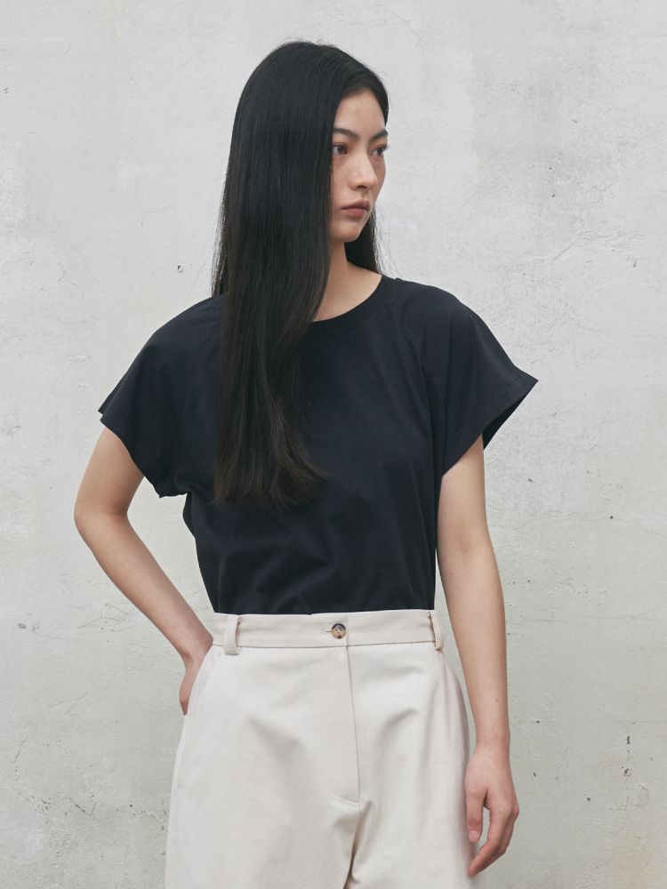 라글란 소매의 슬리브리스 형태의 베이직 티셔츠