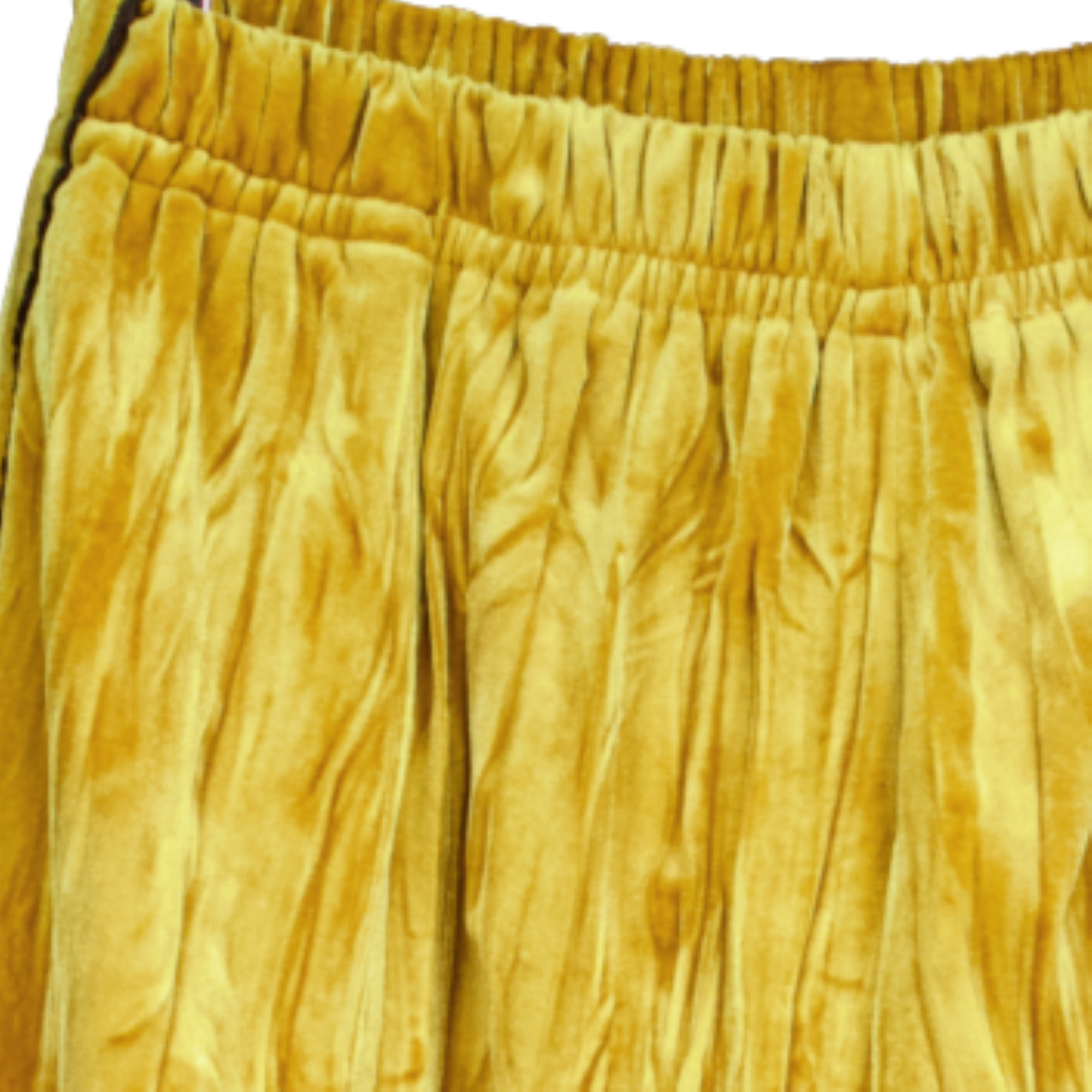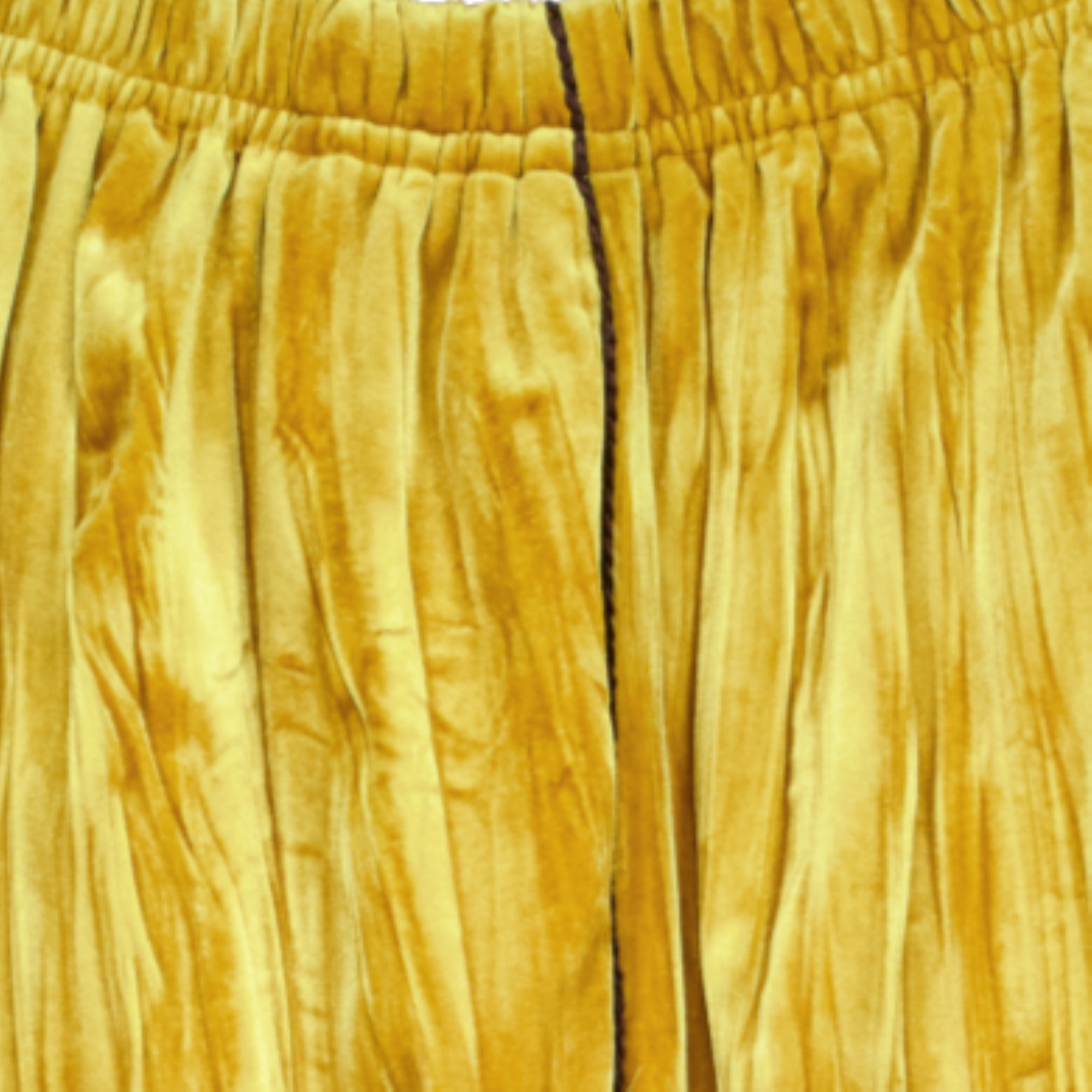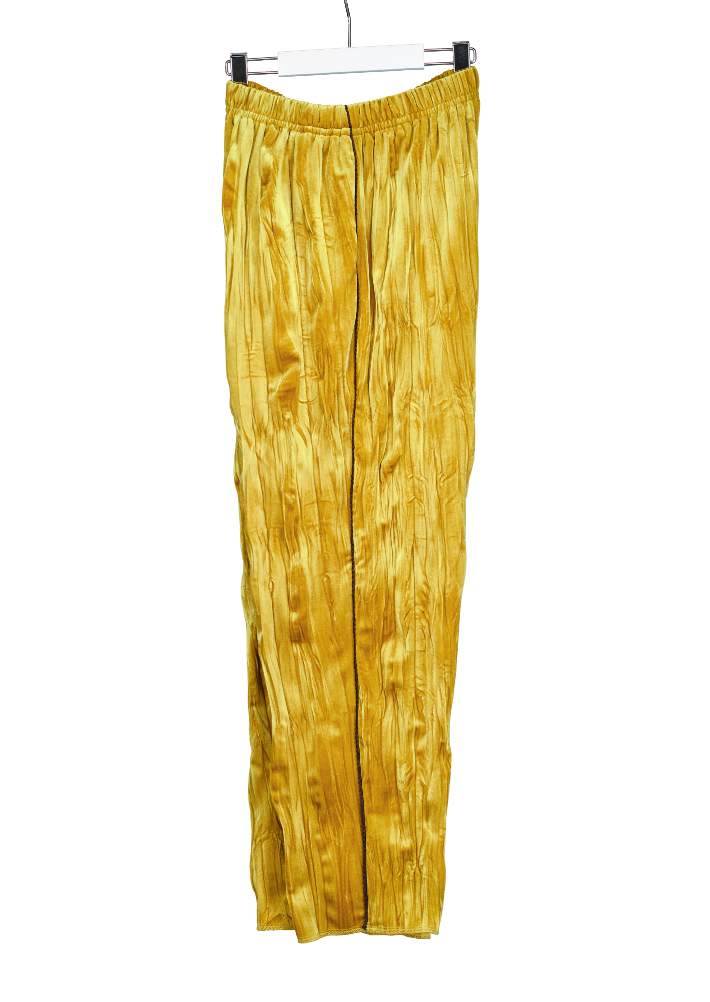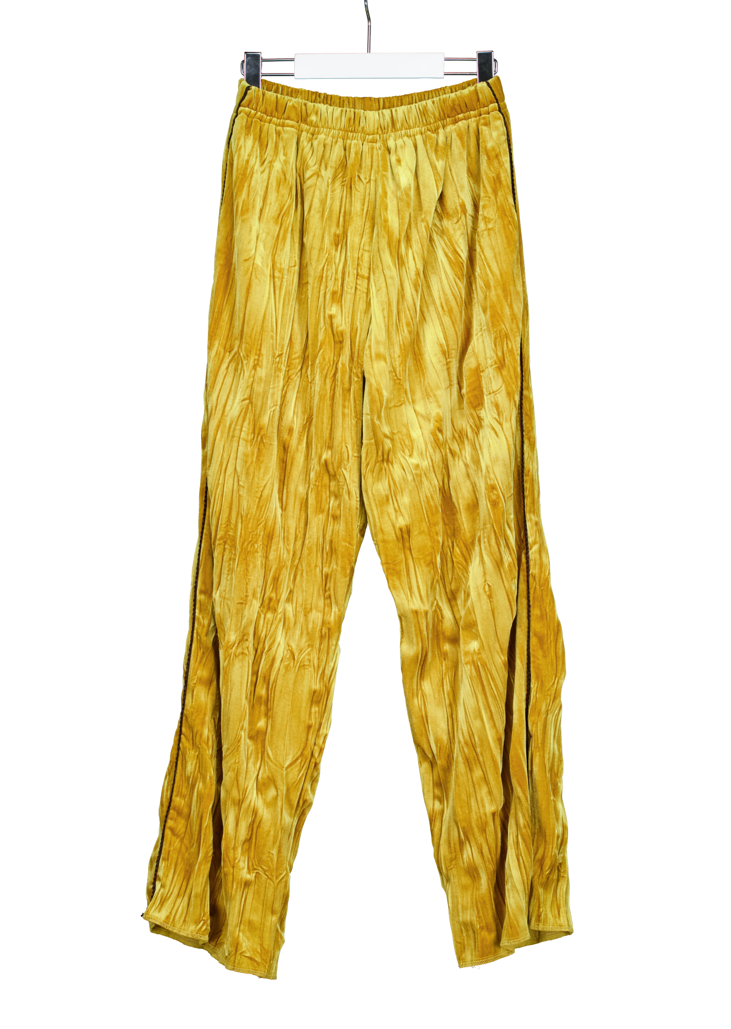 - 자연스럽게 잡힌 크링클 텍스처가 돋보이는 벨벳 팬츠입니다. 빛의 각도에 따라 은은하게 변화하는 광택이 독특한 분위기를 주며, 실루엣에 입체감을 더해줍니다.